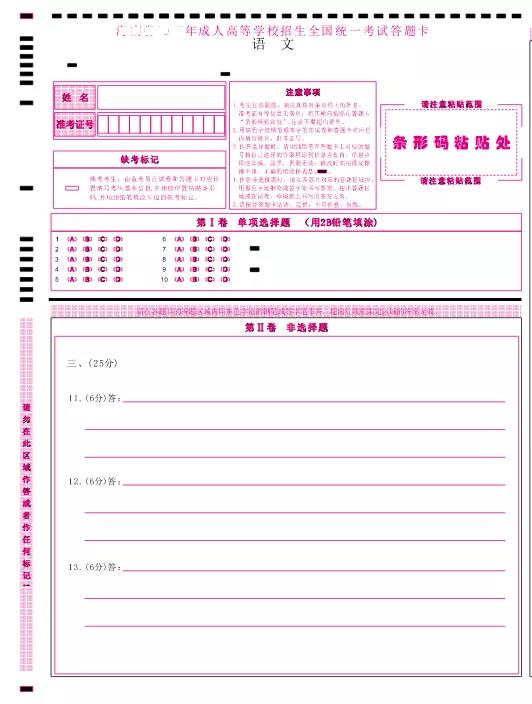 所在位置:杭州成考網 > 成考指南 > 杭州成人高考答題卡樣式及填涂技巧